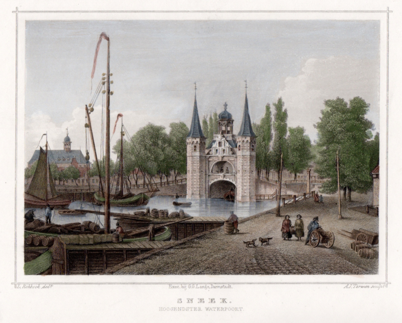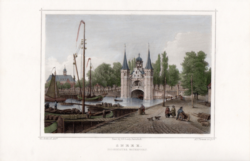 Omschrijving: Gezicht op Hoogendster Waterpoort te Sneek.
